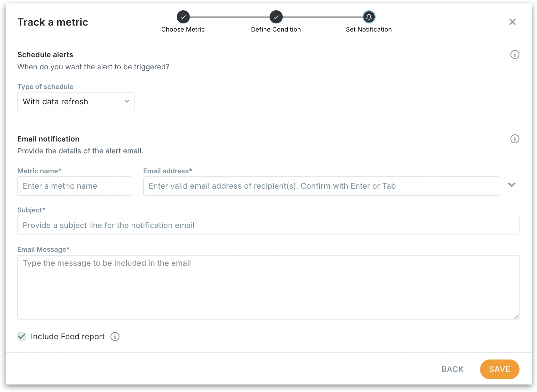 Metric Name: Name that will appear in the Feed list and email notifications.