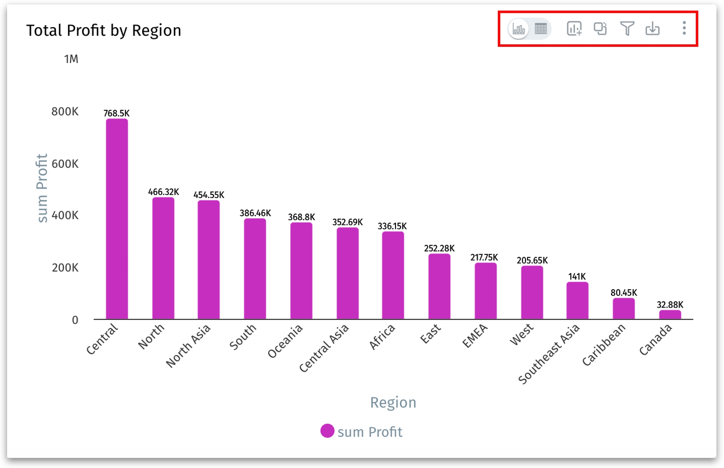 Click on the View Data toggle button to view the underlying table data of the chart. Alternatively, you can click on the three-dot submenu of a chart and select Detailed view.