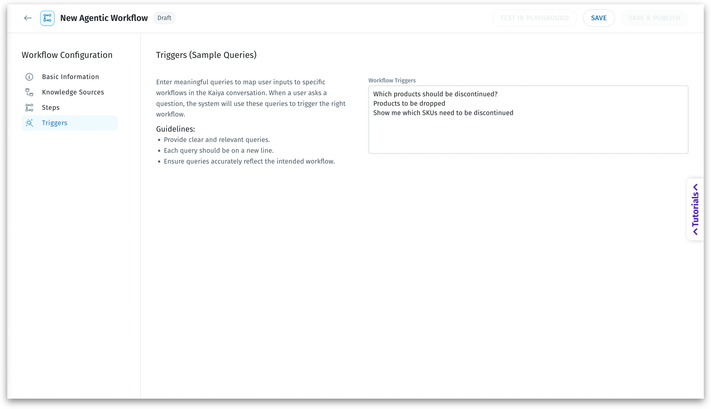 After successful testing, click on Save & Publish to move the workflow to the Published Agents section of the Agent Library. Alternatively, click on Save to save it as a draft.