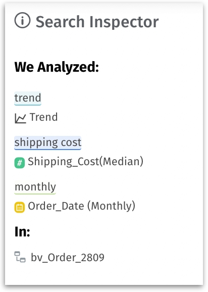 Matched the keyword “shipping cost” with the measure column “Shipping_Cost” with median aggregation.