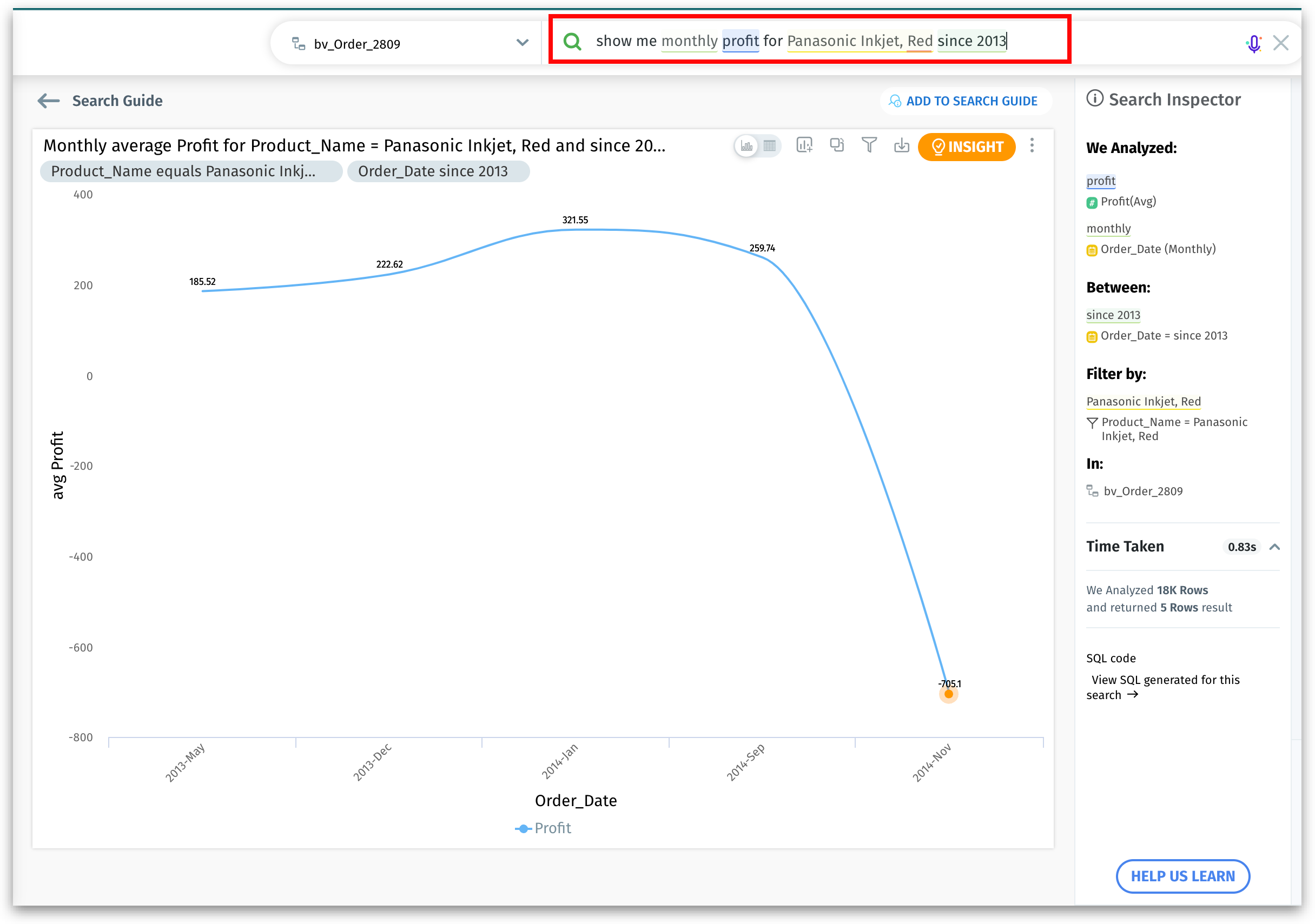 <figure><img src="https://content.gitbook.com/content/z4Tm2IzKyAiWUWiskgq5/blobs/aKXeEoVDlzp1YuY0Sno8/Frame%2017.png" alt="" width="375"><figcaption><p><em>"Show me monthly profit for Panasonic since 2013"</em></p></figcaption></figure>