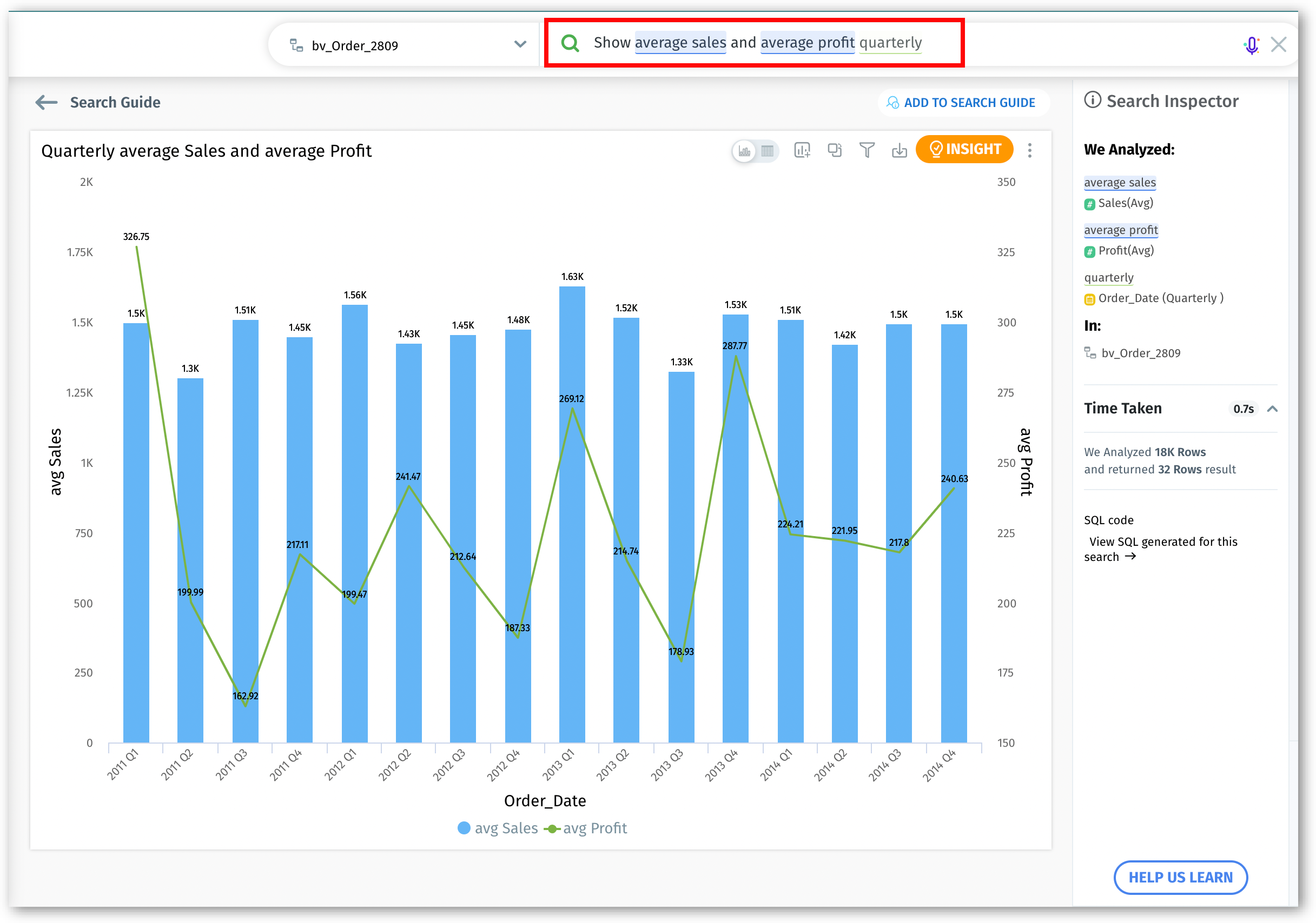 <figure><img src="https://content.gitbook.com/content/z4Tm2IzKyAiWUWiskgq5/blobs/cdVdsVBmlCxSxkBQGnyW/Frame%206.png" alt="" width="375"><figcaption><p><em>"Show average sales and average profit quarterly."</em></p></figcaption></figure>