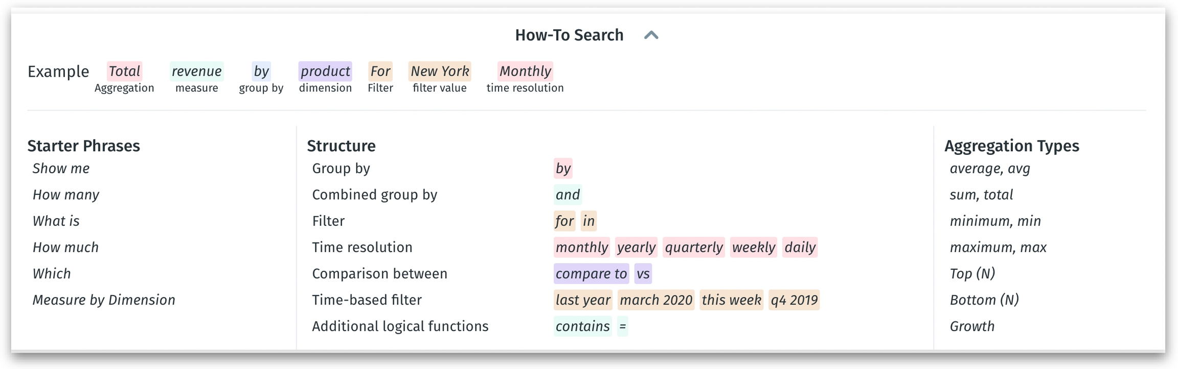 Click on the Expand icon 🔽 next to How-to Search to view the syntax/format to be followed for a search query.