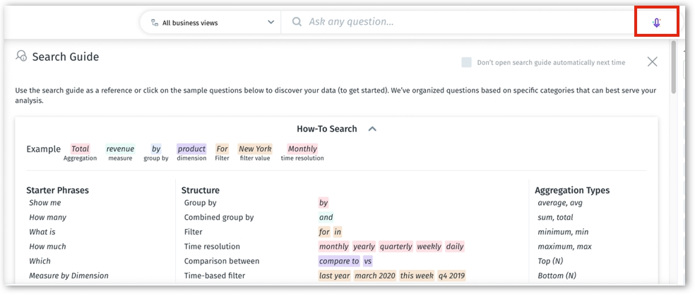 Tellius offers a voice-driven search feature, that allows users to verbally pose queries in human language, facilitating a more intuitive and efficient search experience. By leveraging voice-driven search, users can enjoy a more natural and streamlined interaction with Tellius