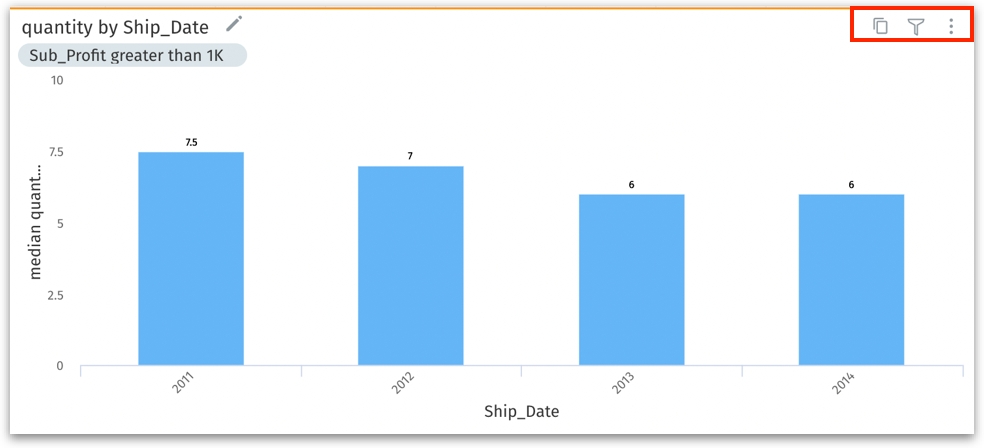 When you hover over any chart in the Vizpad, the following options will be displayed.