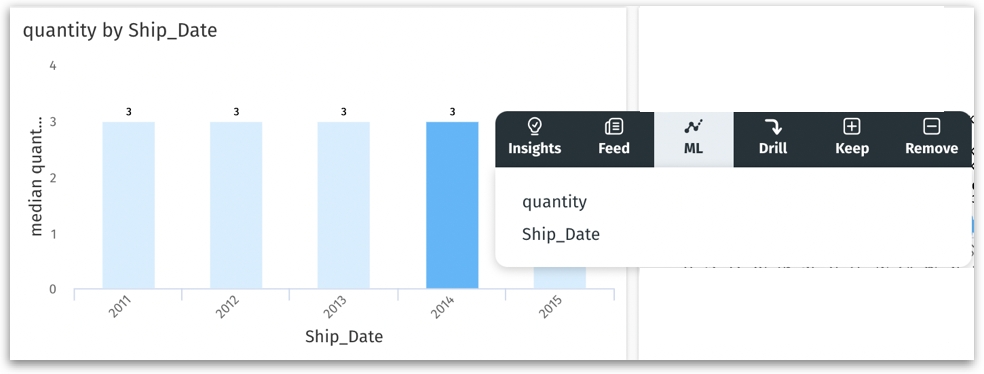 This allows you to create machine learning models based on the primary measures and dimensions used in your chart.