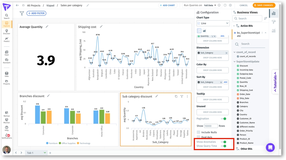 Enabling/disabling anomalies in chart level (in Search and Vizpads) will not change the instance level settings configured in Application Settings, or the Vizpad level setting.
