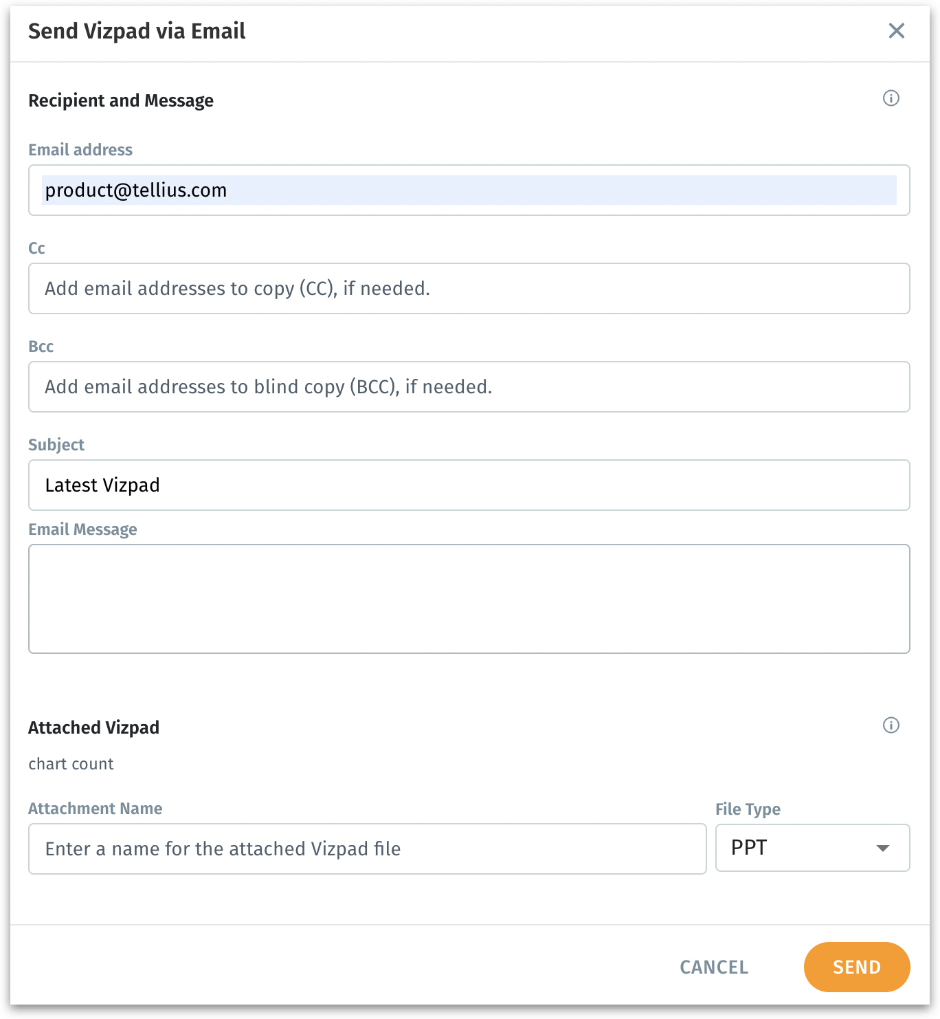 Tellius now simplifies how you share insights. You can directly export Vizpads and share them via email (in the form of PPT and PDF)—no need to save and manually attach files. Customize the name of your Vizpad during export, and the recipient will receive an email containing both the customized name and a direct link to open the Vizpad in Tellius.