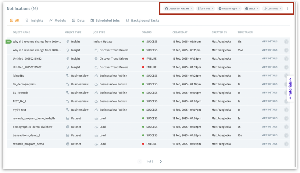 Filter jobs by type, user, role, status, date, and time to gain clear insights into system activity.