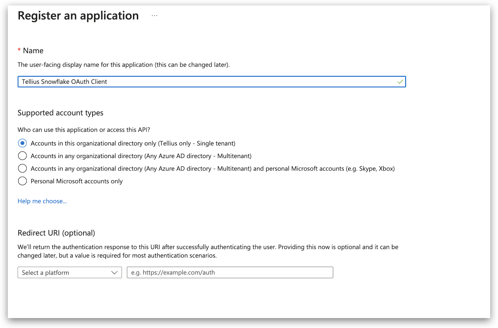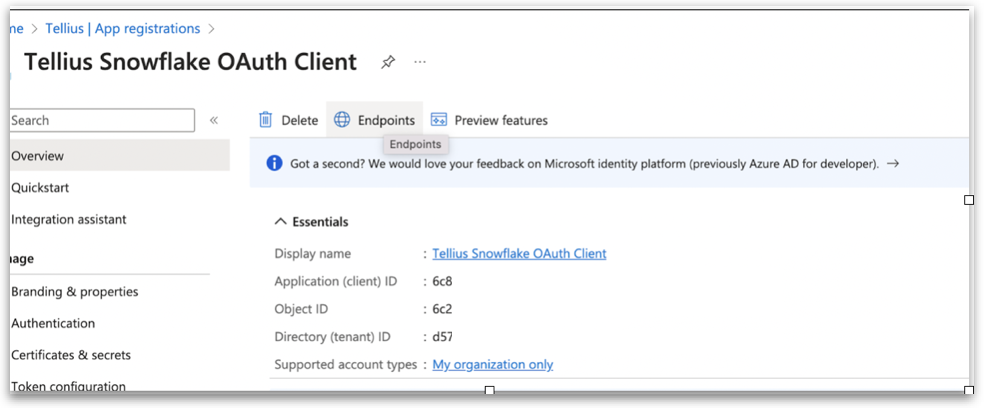 2.1 App registration for Snowflake OAuth Client