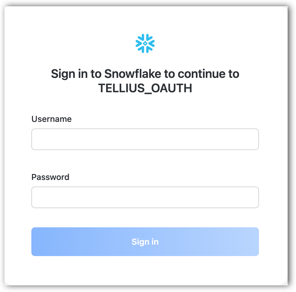 Once you click on Authorize, Tellius sends an authorization request to the Snowflake authorization server, and you will be redirected to the following window:
