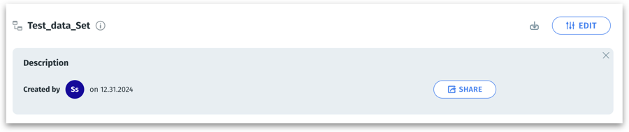 Click on the info icon next to the Business View name, and the BV description, creator of the BV, created time will be displayed. You can also click on Share button to share the Business View with the required users and groups.