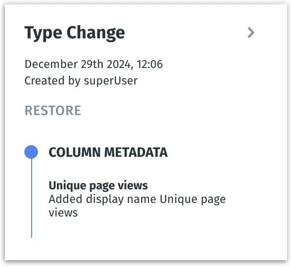 The pane includes a Restore button that reverts the pipeline (and thus your dataset) to the state at that step. Once discarded, the pipeline and data revert to the state of the previous node.