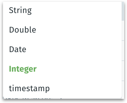 Double: Interprets the column as floating-point numeric type (e.g., 3.14159). Use if you need decimal precision or have fractional values.