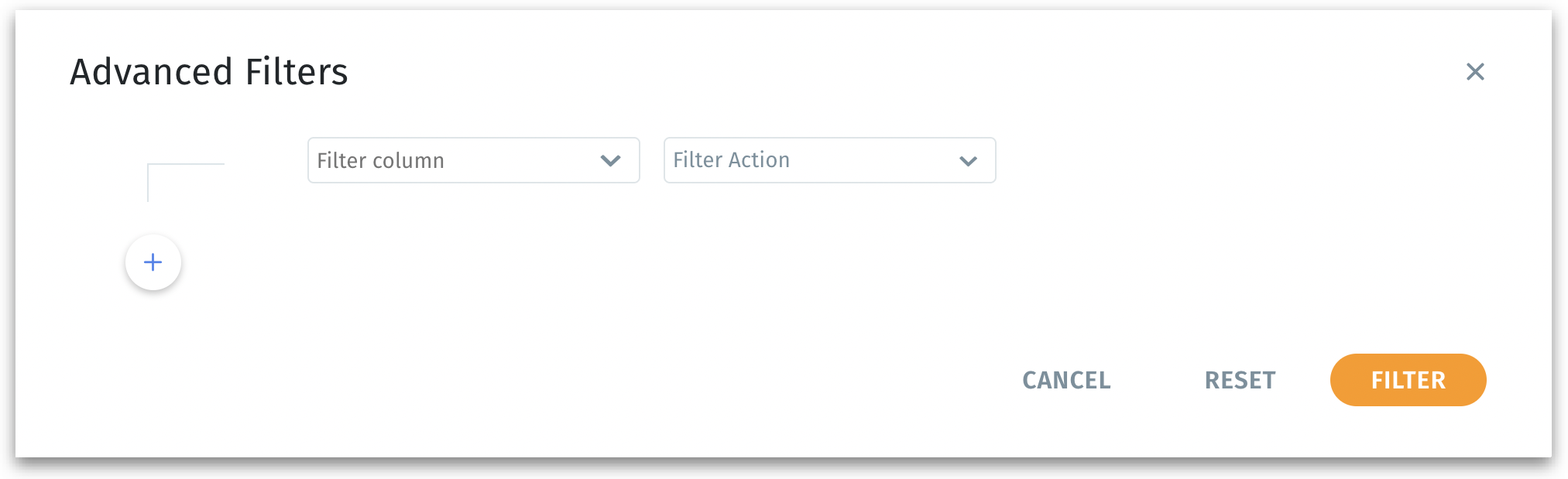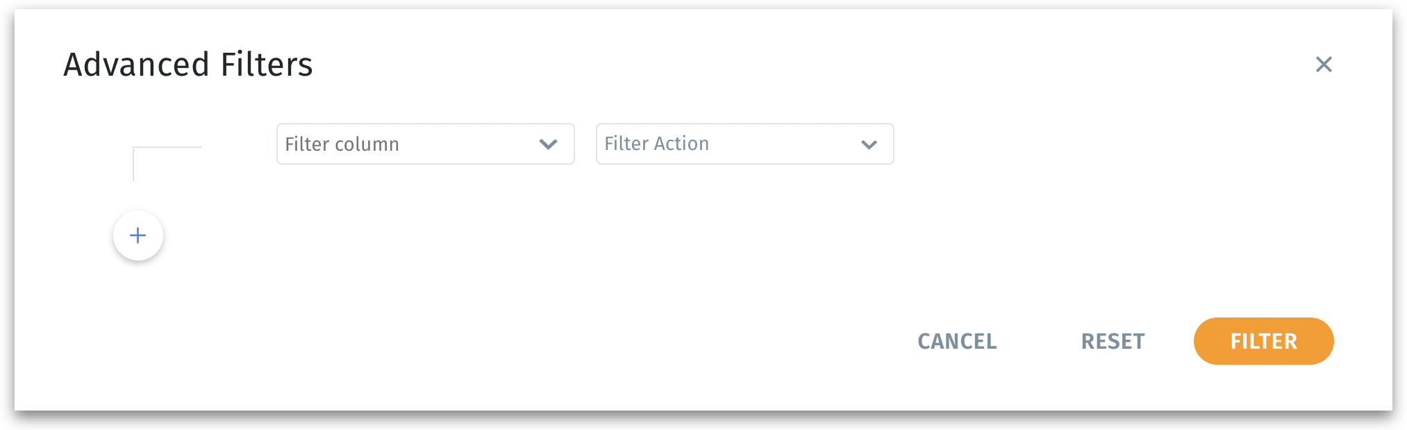 The “+” icon lets you add further filter clauses (e.g., “Column A > 10” AND “Column B = ‘XYZ’”).