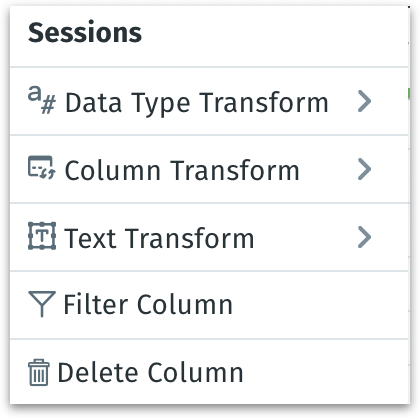 This submenu lets you convert a column’s data type. Here are the options: