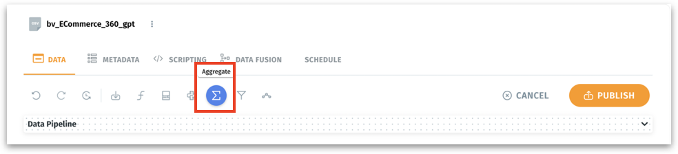 Above Data Pipeline, click on the Aggregate option.