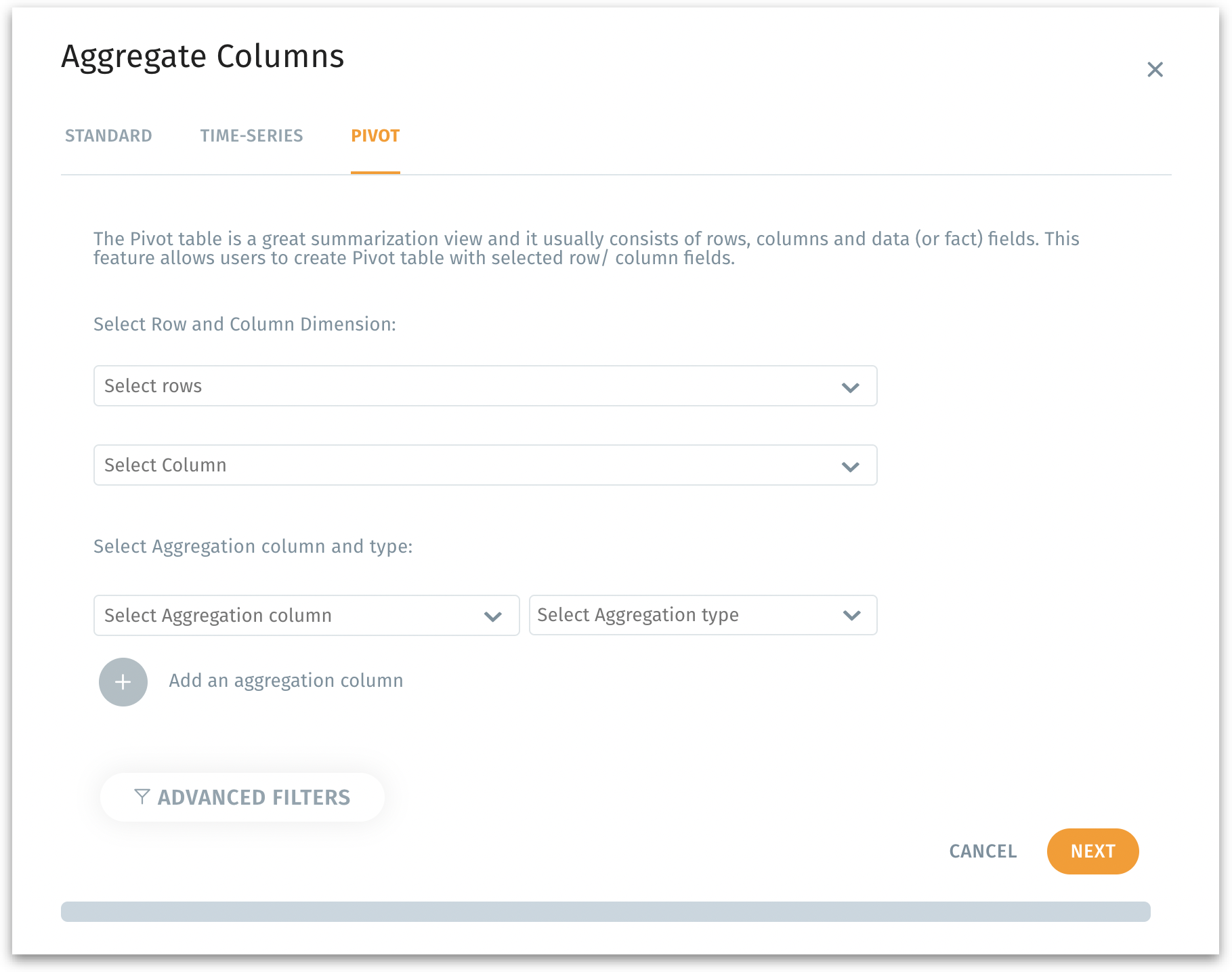 (Optional) Advanced Filters to add filter condition for your aggregate.