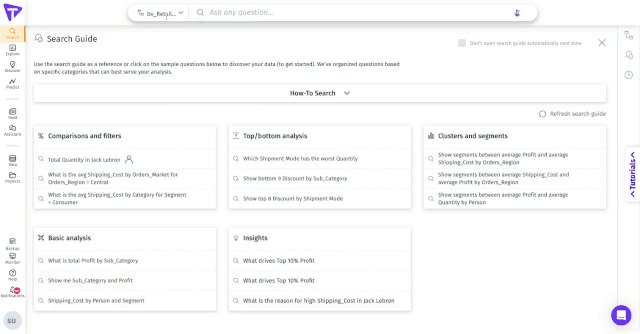 Select the columns that need to be considered for the creation of Insights under the **Discover** tab. The columns can also be included/excluded while creating Insights.