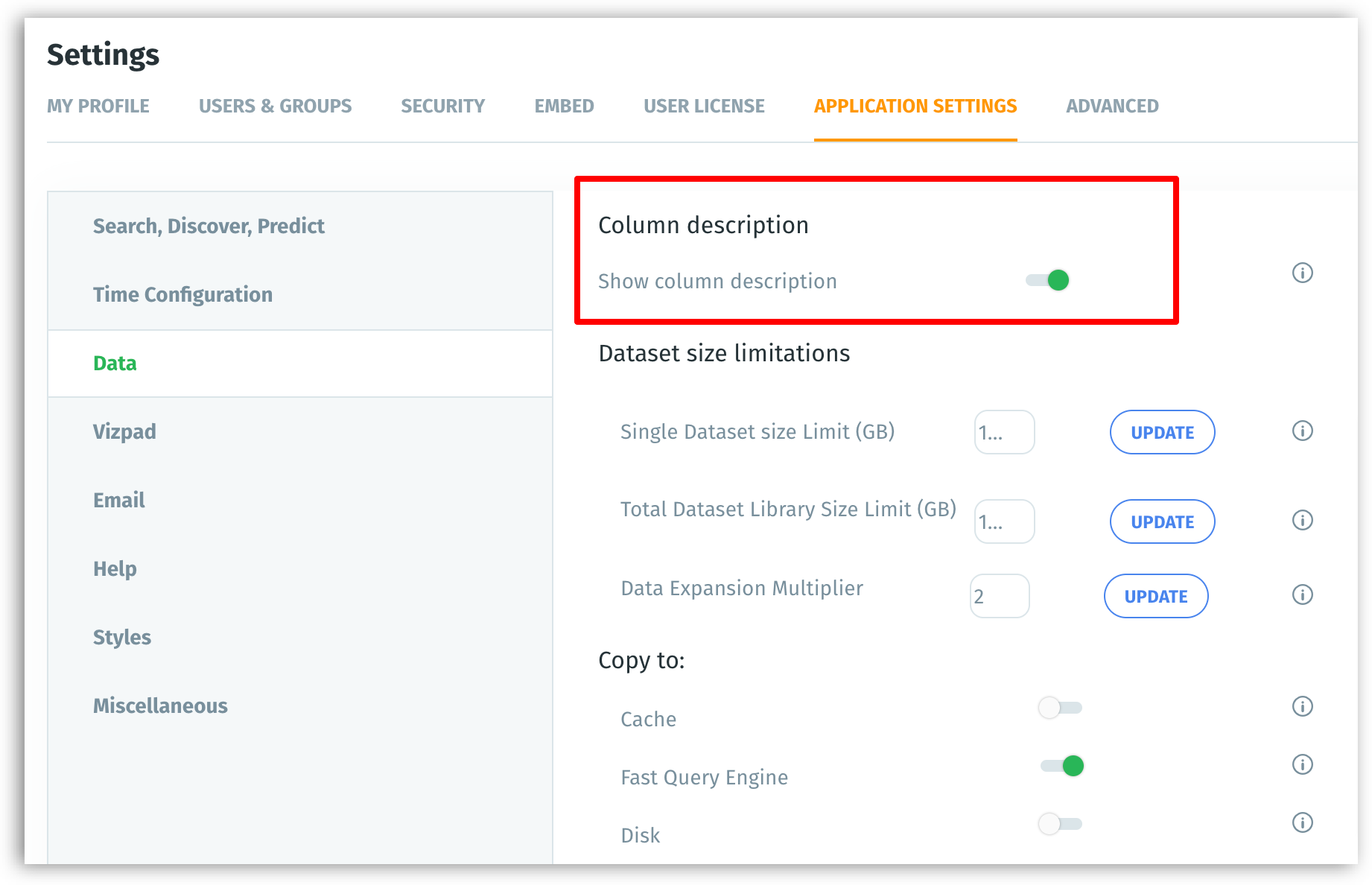 The Show Column Description option will be enabled by default.