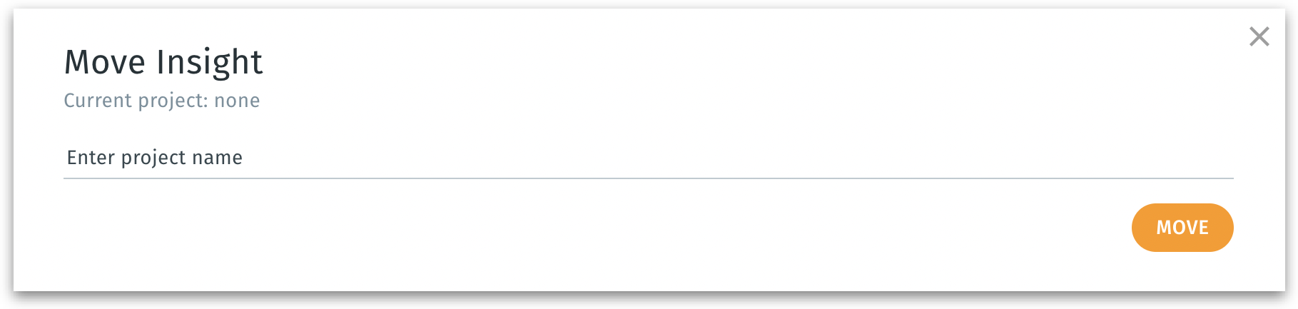 d. Move - To move the Insight to a specific Projects folder. The following window appears where you can provide the Project name to be moved.