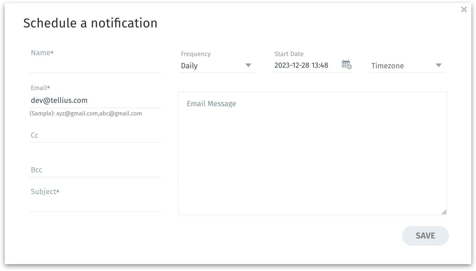 Click on the plus icon to schedule a new notification. The following window appears. Provide the following details: