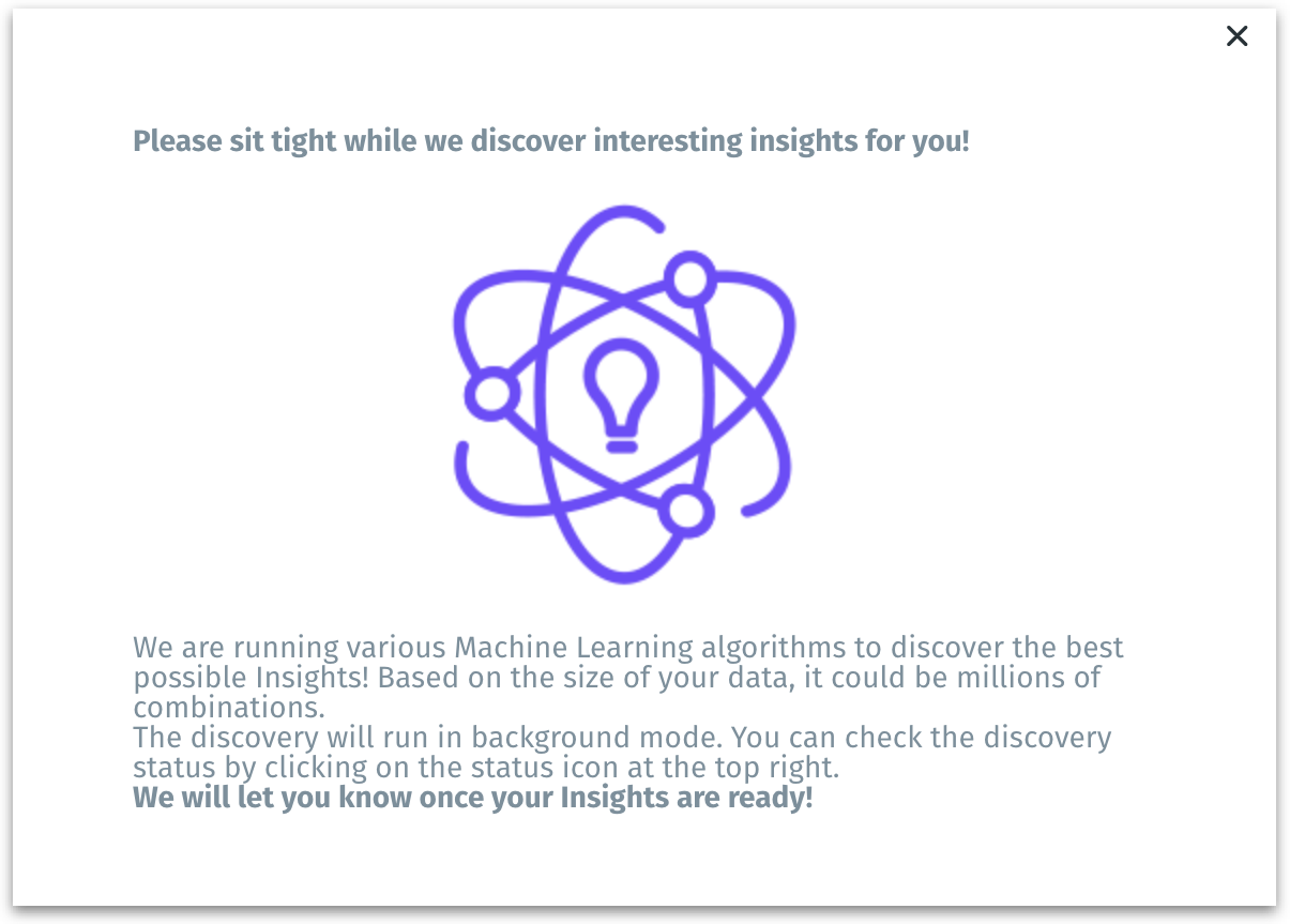Once you click on Create, the Insight generation will begin and the following screen will be displayed.