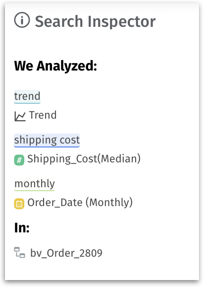 Matched the keyword “shipping cost” with the measure column “Shipping_Cost” with median aggregation.