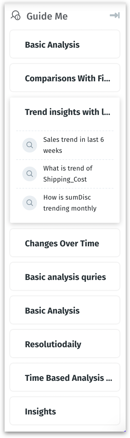 Please note that clicking on the Search Guide option in the right pane will display the Search Guide queries in the adjacent panel while keeping the search results intact. However, clicking on the Search Guide (listed #1) will remove the results and move back to the Search Guide.