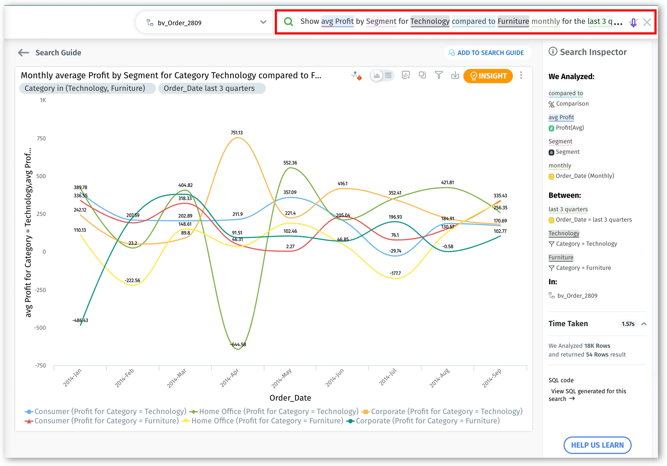 From basic to complex queries, Tellius' powerful search engine is designed to interpret and analyze a vast array of questions, paving the way for informed decision-making.