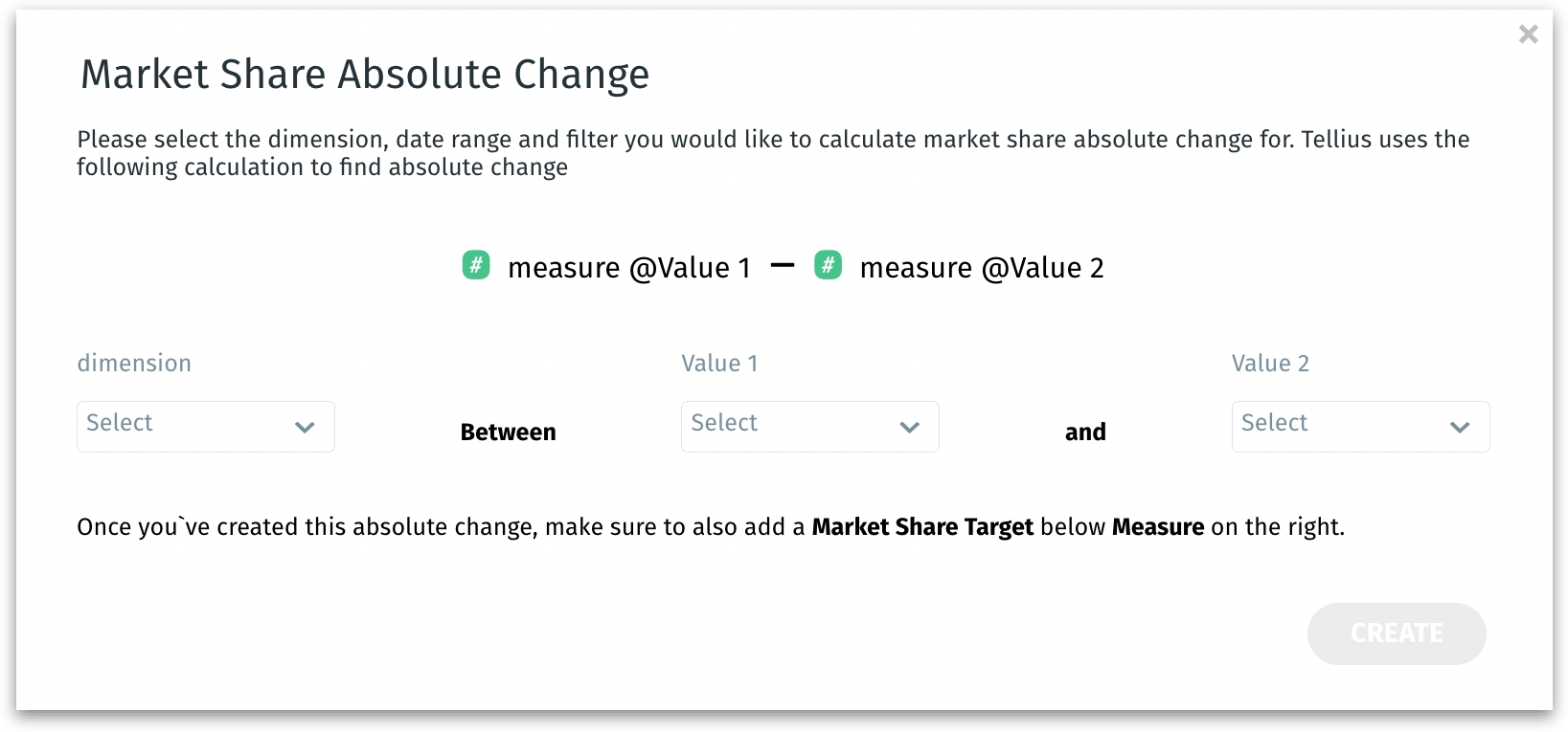 After setting up the absolute change calculation, you are prompted to also add a Market Share Target filter, allowing for a targeted analysis of market share changes.