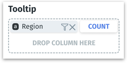 When a column is added to the Tooltip field, and if it is a measure then the aggregation label for measure (as described above) will be displayed. If the column added is a dimension, then the count aggregation will be displayed.