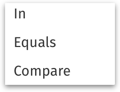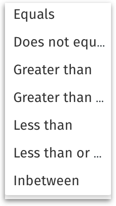For measures - equals, does not equal, greater than, greater than or equal to, less than, less than or equal to, inbetween