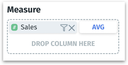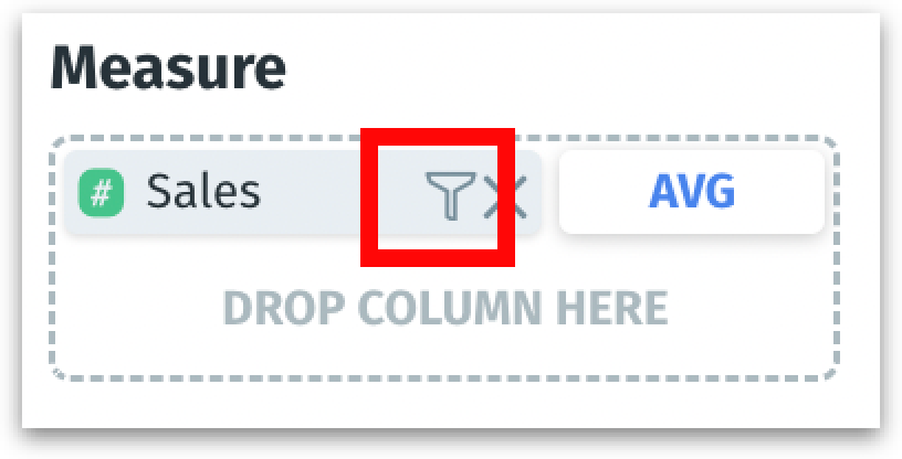 A filter icon appears next to the "x" icon for each measure added to a field, allowing you to narrow down or refine the data displayed in your charts.