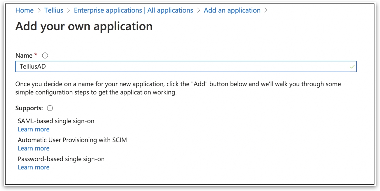 Go to the All Applications tab and search for the application you just created (in this case, it's "TelliusAD"). Click on it to open its configuration page.