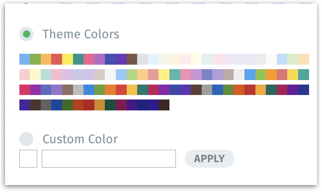 Under Theme Colors, you'll be presented with a default palette of theme colors, curated to complement your visualizations.