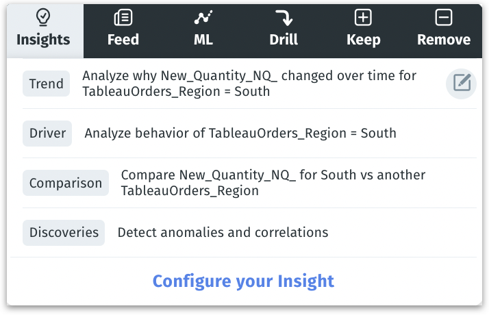 If the provided Insights don't fully meet your needs, you can opt to configure your own by clicking on the “Configure your Insight” button. Here, you can modify or add to the pre-populated fields to your specific requirements.