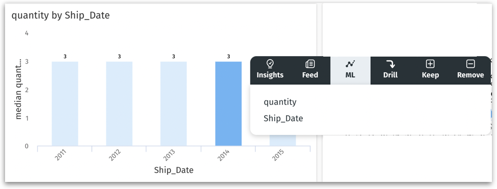 This allows you to create machine learning models based on the primary measures and dimensions used in your chart.