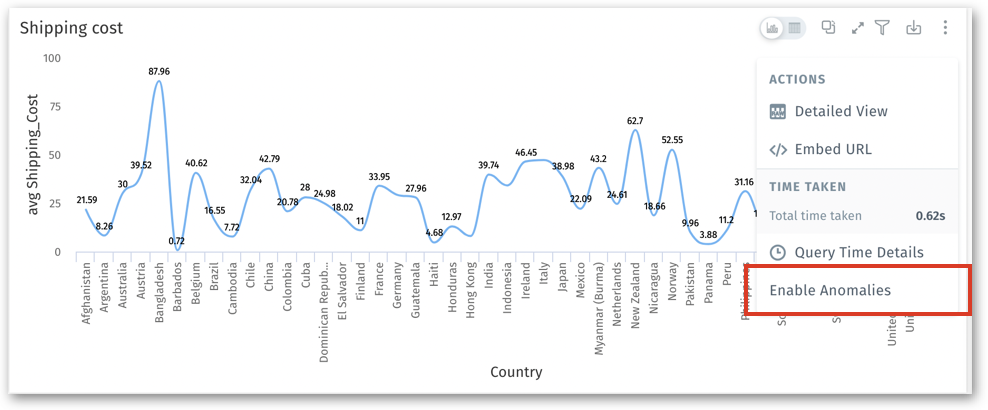 Configuring the display of anomalies for a chart in a Vizpad and Search