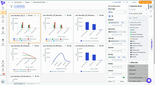 The filters will be applied to all the charts in the Vizpad that were created using the specific Business View, and a global filter pill will be created that reflects the applied control filter.