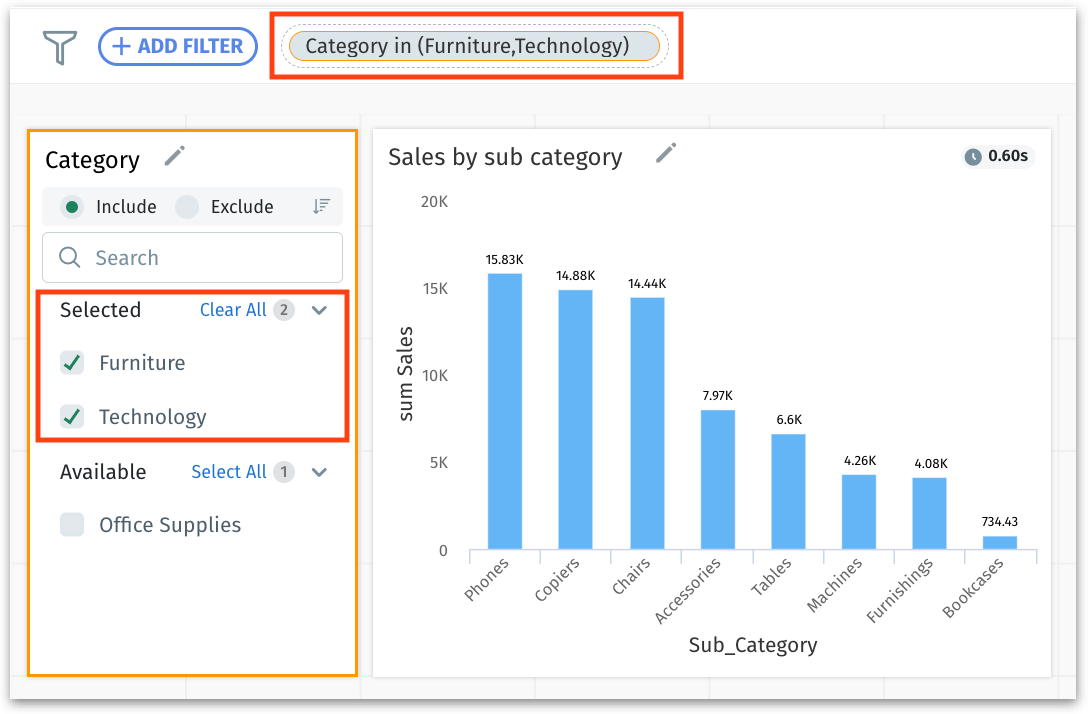 The selected values will be applied only after users click the "Apply" button. This avoids the unnecessary overhead of applying the filters each time a value is selected.