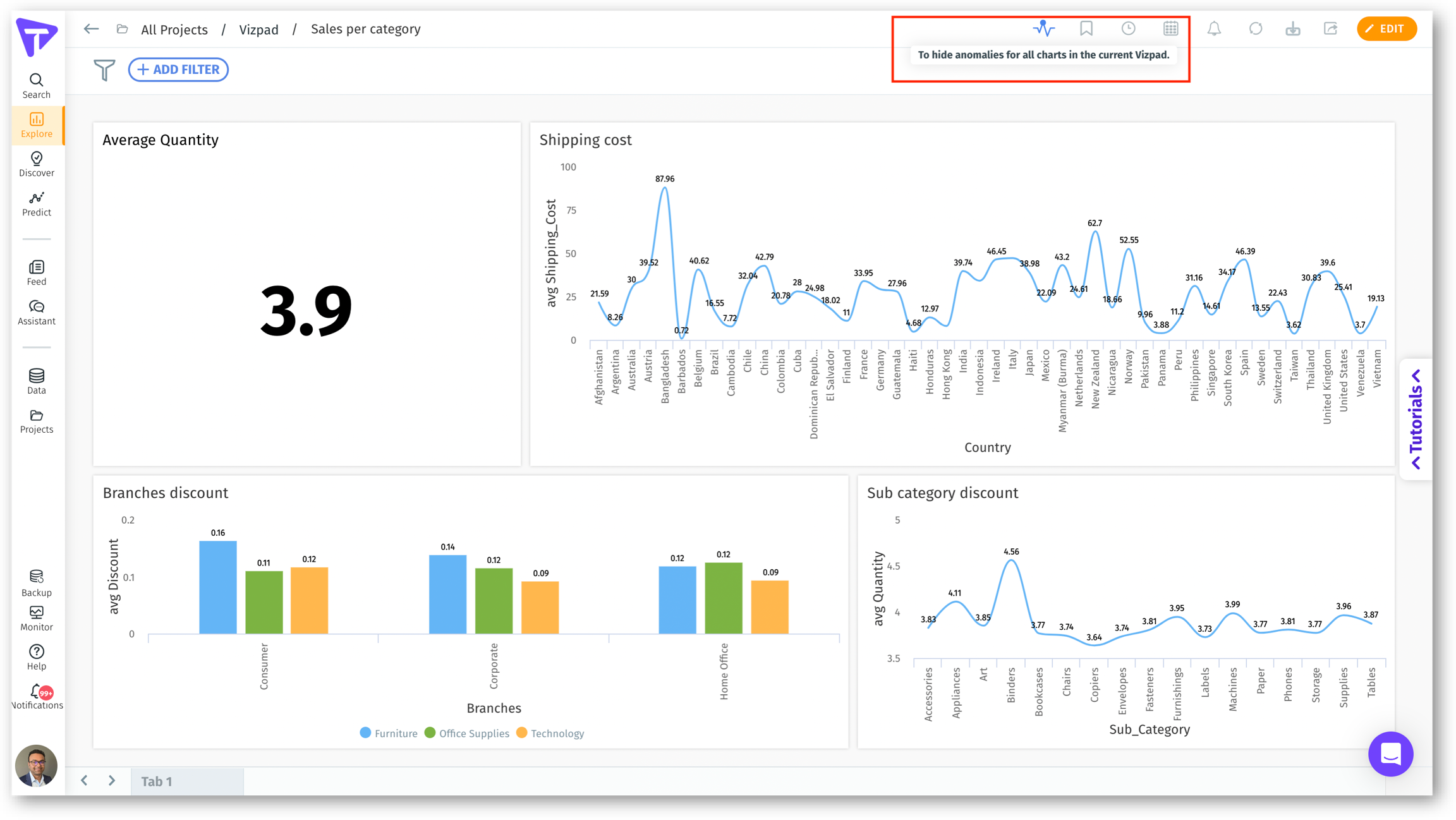Vizpad level: Toggle buttons on every Vizpad enable users to show/hide anomalies for that particular Vizpad.