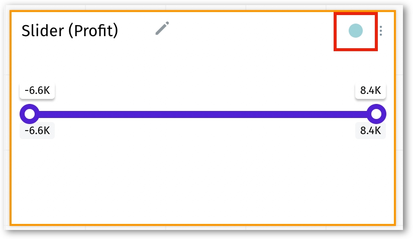 Axis and grid formatting The values displayed in the slider range control filters now inherit the formatting applied on the underlying Business View. For example, in the screenshot below, it inherits the suffix "K" for the numeric values. Also, the Business View names in the form of colored circles will be displayed in the top right corner.