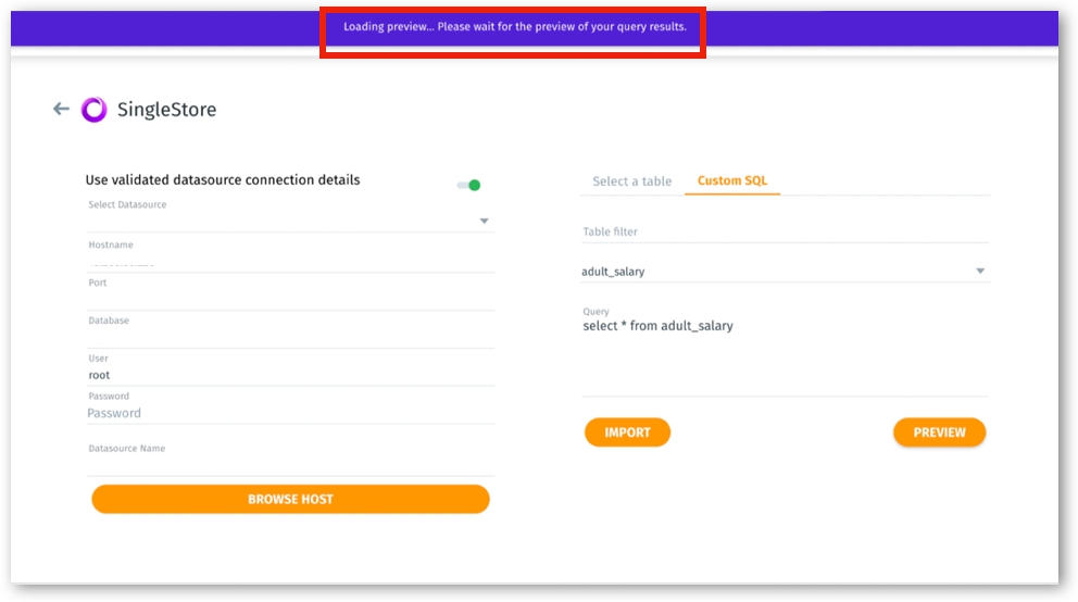A notification message will be displayed when users click on "Preview" for custom SQL queries.