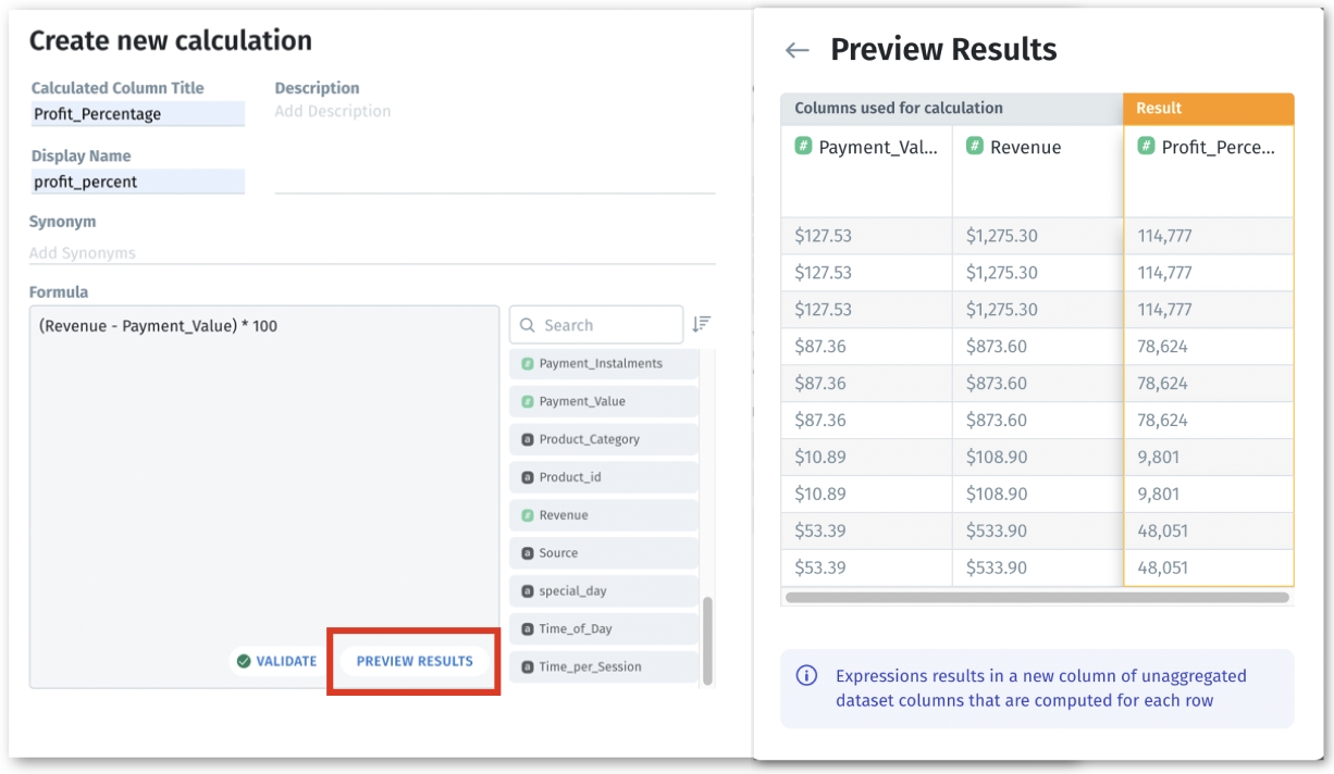 To streamline the data management process, we have added the ability to add or delete calculated columns in bulk. While creating a new calculated column, after validating the formula, users can also preview the results for a limited set of data.