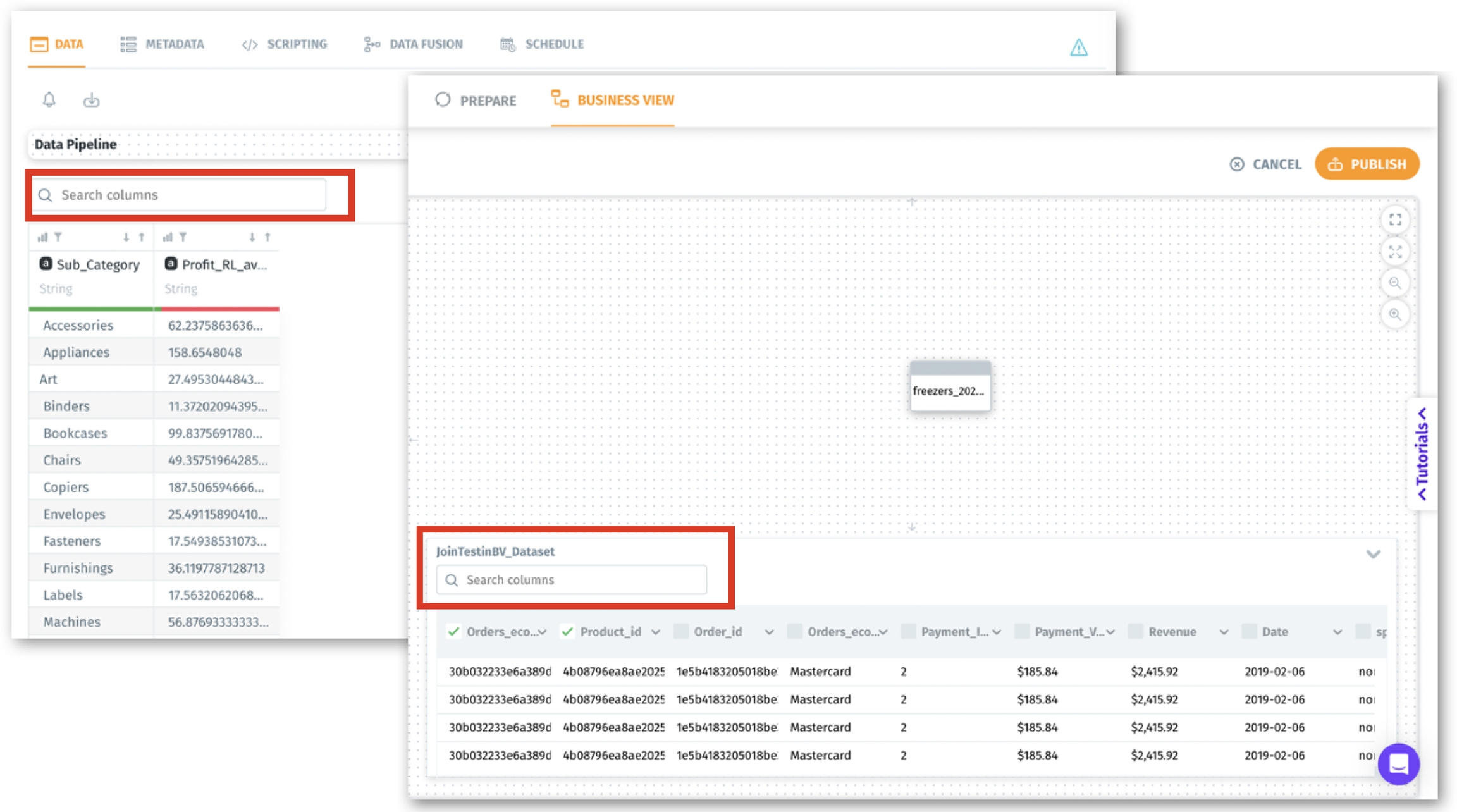We've introduced a search bar for columns in the Prepare tab and Business View tab (Edit mode) of the Data section. This feature will make navigating and finding the required columns significantly easier.