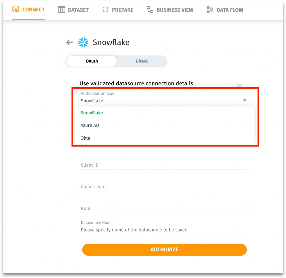 With the latest release, users can now leverage Azure AD or Okta as external token providers for Snowflake. In addition to connecting directly, Tellius has expanded the Snowflake OAuth connectivity to support Microsoft AD and Okta. Upon expiration (after 90 days), Tellius will display a re-authentication prompt when a user accesses a Vizpad sourced from Snowflake or queries a Business View using a Snowflake dataset.