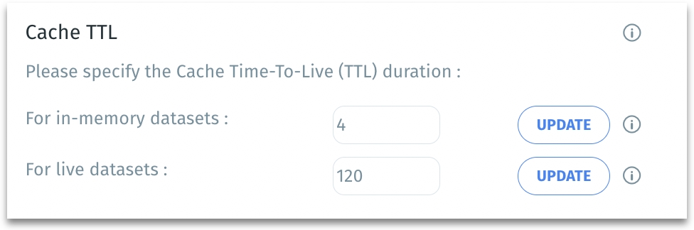4.2.5 introduces a new feature that allows for direct configuration of the cache Time-to-Live (TTL) for live and non-live data sources from Settings → Application Settings. The TTL value specifies the duration for which the data remains in the cache before it's considered outdated and needs to be refreshed. By adjusting the cache duration to specific needs, users can optimize data retrieval, ensuring faster access and improved performance.