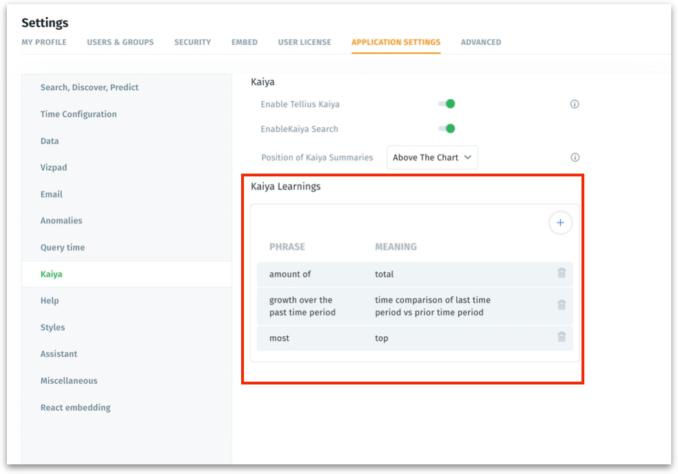 The learnings added under Settings → Application Settings → Kaiya → Kaiya Learnings apply universally across all Business Views, enabling consistent query interpretation and execution.