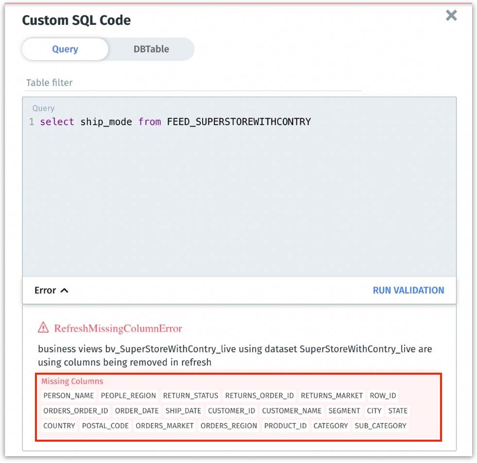 We have enhanced the user interface to display all the missing columns when swapping data sources or editing SQL loads. Clear visibility into missing columns helps users quickly identify and promptly take corrective actions.